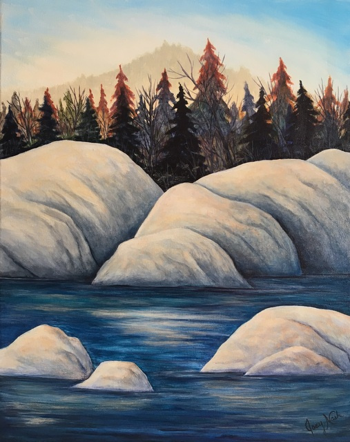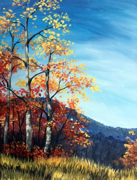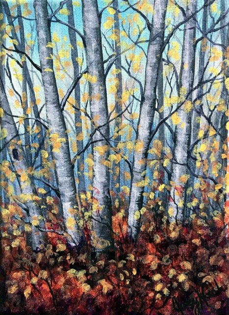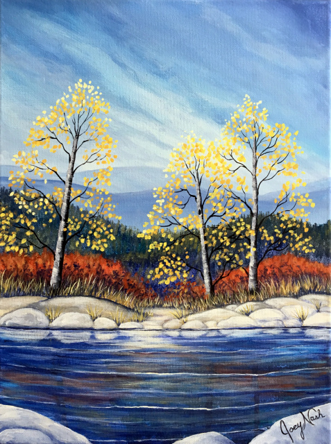 12×16 Acrylic painting intending to celebrate Fall colours, the call of distant Read More